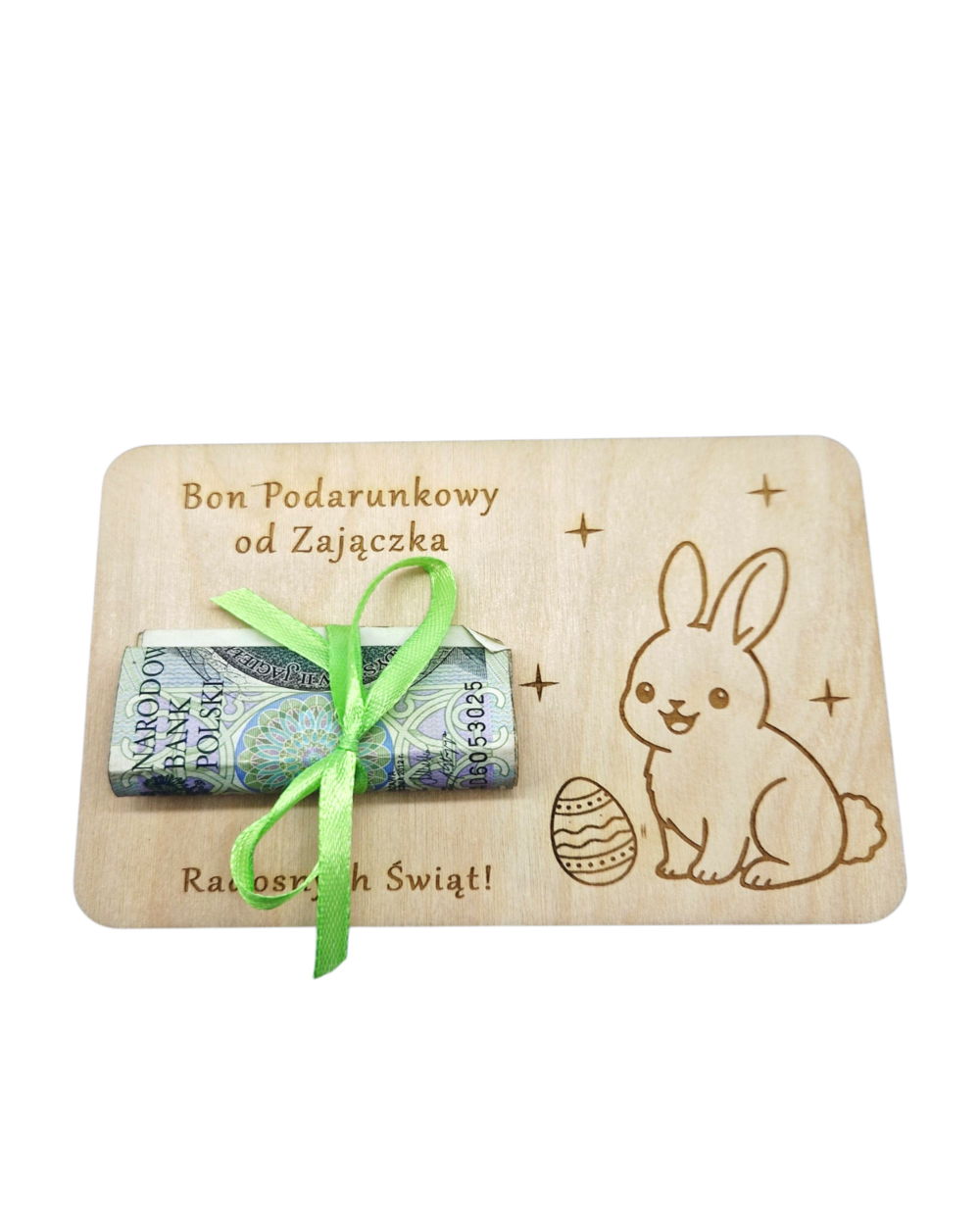 Drewniany bon podarunkowy na pieniądze – idealny prezent na Wielkanoc.