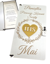 - Gotowe Życzenia w Środku: Nie musisz szukać dodatkowej kartki. Wewnątrz pudełka znajduje się elegancka wkładka z pięknym wierszem i miejscem na Twój podpis. To oszczędność czasu i gwarancja estetycznego wyglądu.