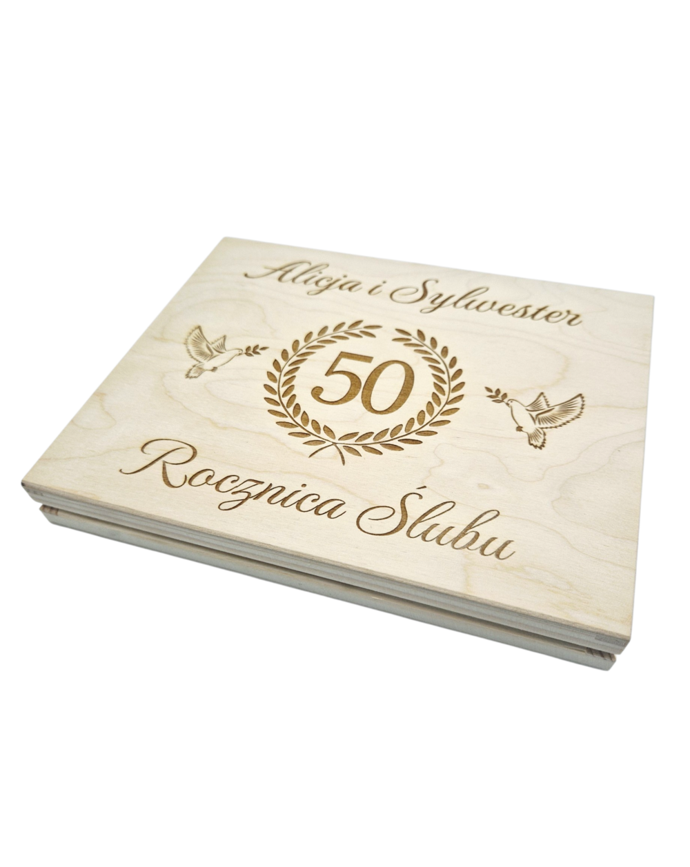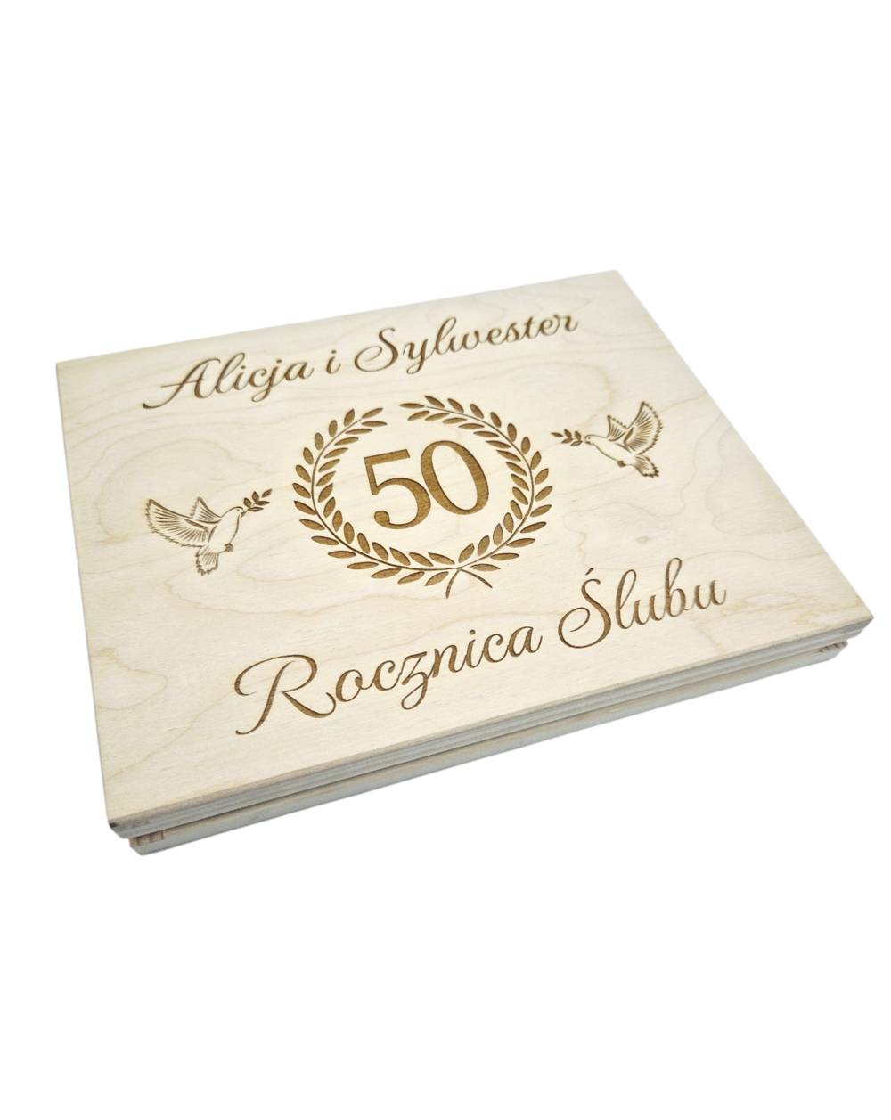 - Pełna Personalizacja: Na zewnątrz grawerujemy imiona oraz numer rocznicy (możemy przygotować projekt na dowolną rocznicę – 1, 10, 25, 50 czy każdą inną!).