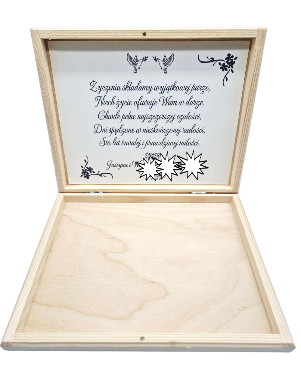 Treść życzeń wewnątrz pudełka:
